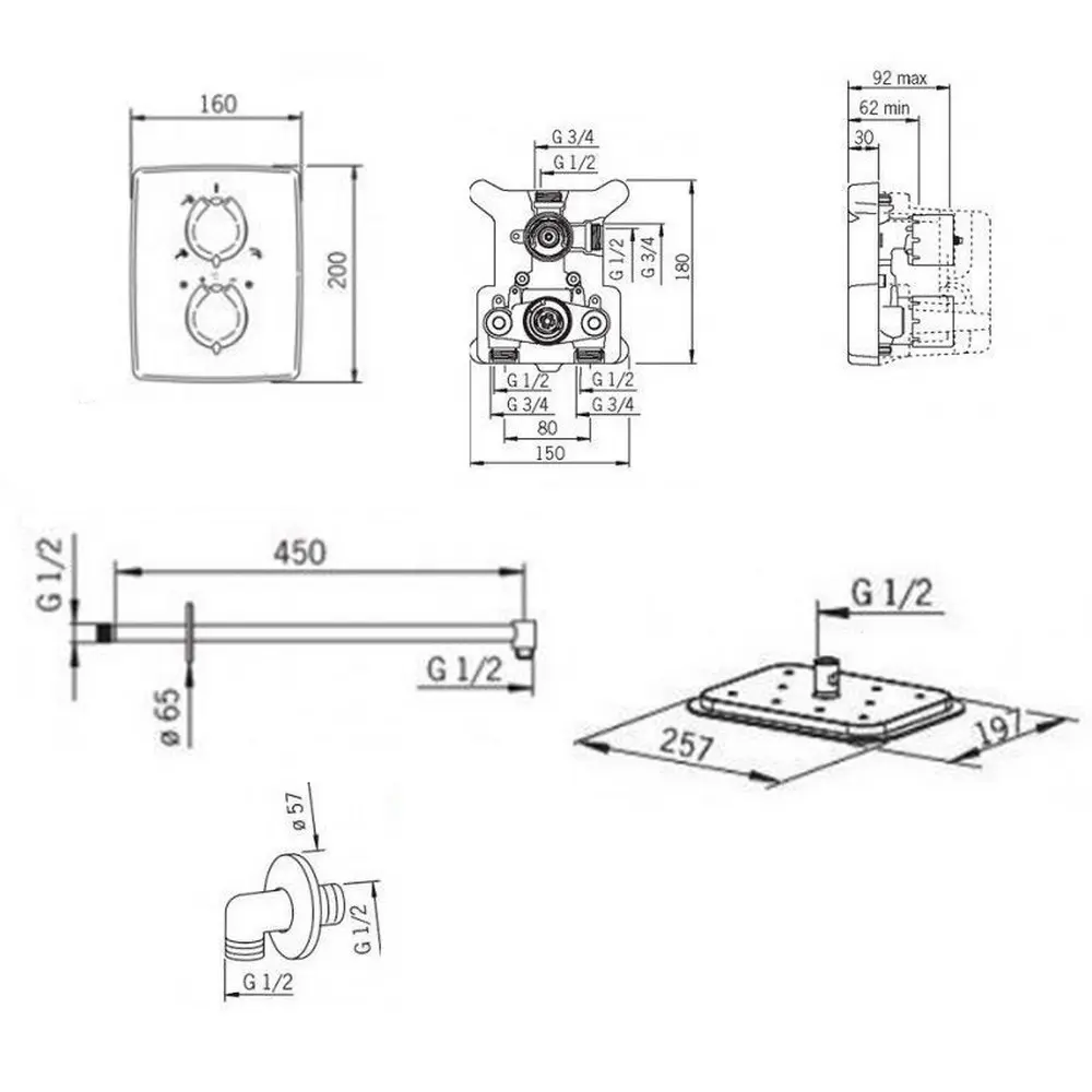Змішувач, Кронштейн для ручного душу, Лійка для ручного душу, Кронштейн для верхнього душу, Лійка для верхнього душу, Кріплення