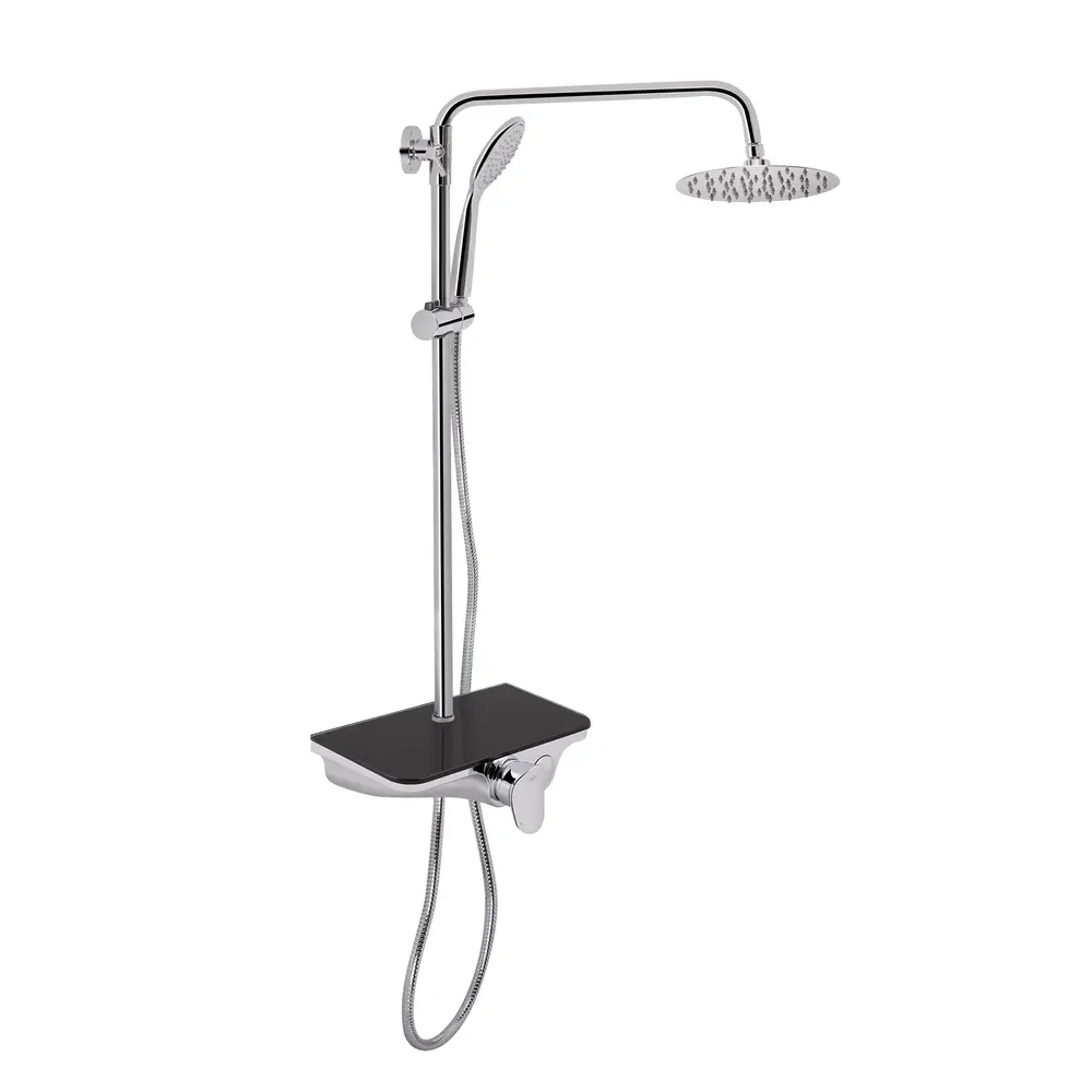Душевая система Qtap Sloup 57106VKOB - эстетическое и практическое решение в одном изделии. Она изготовлена из качественной латуни и прочного пластика, не подвержены коррозии. Система выполнена в черном цвете с матовой поверхностью, оборудована стильным смесителем-полкой из закаленного стекла, а также двумя видами душа - ручным и верхним. Переключение между потребителями осуществляется с помощью кнопки на корпусе смесителя. Изделие станет ярким акцентом в интерьере.