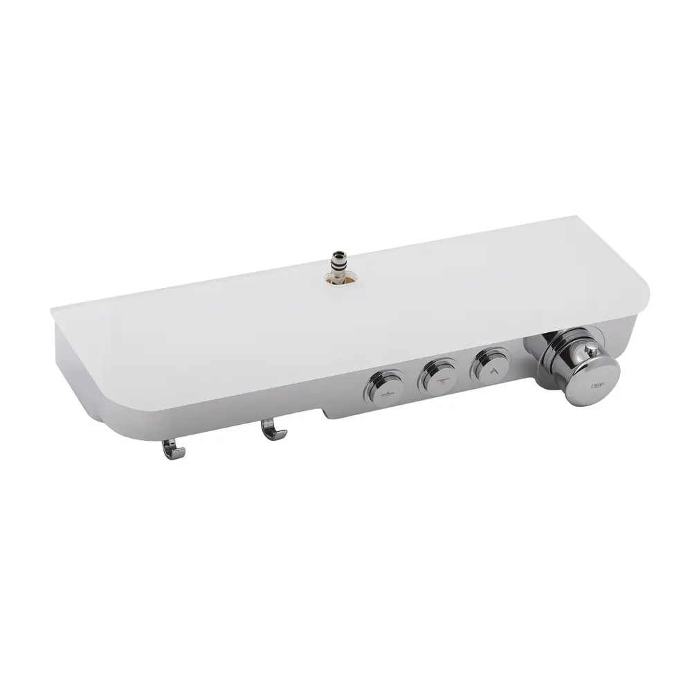 Душевая система Qtap Sloup 57T106VKNW - эстетическое и практическое решение в одном изделии. Она изготовлена из качественной латуни и прочного пластика, не подвержены коррозии. Система выполнена из глянцевой хромированной поверхностью, оборудована стильным смесителем-полкой из закаленного стекла, а также двумя видами душа - ручным и верхним. Переключение между потребителями осуществляется с помощью кнопок на корпусе смесителя. Изделие станет ярким акцентом в интерьере.