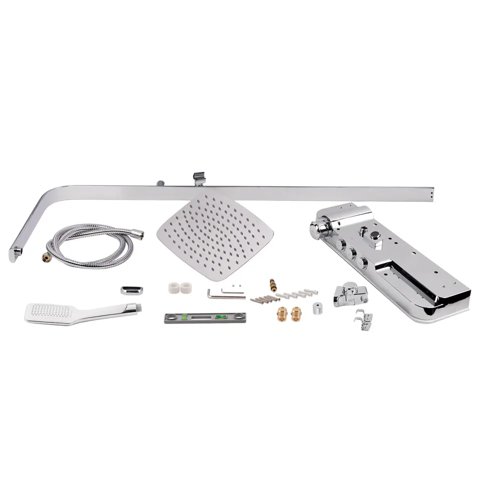 Змішувач, Кронштейн для верхнього душу, Лійка для верхнього душу, Кронштейн для ручного душу, Лійка для ручного душу, Душовий шланг, Душова стійка, Рівень, Кріплення