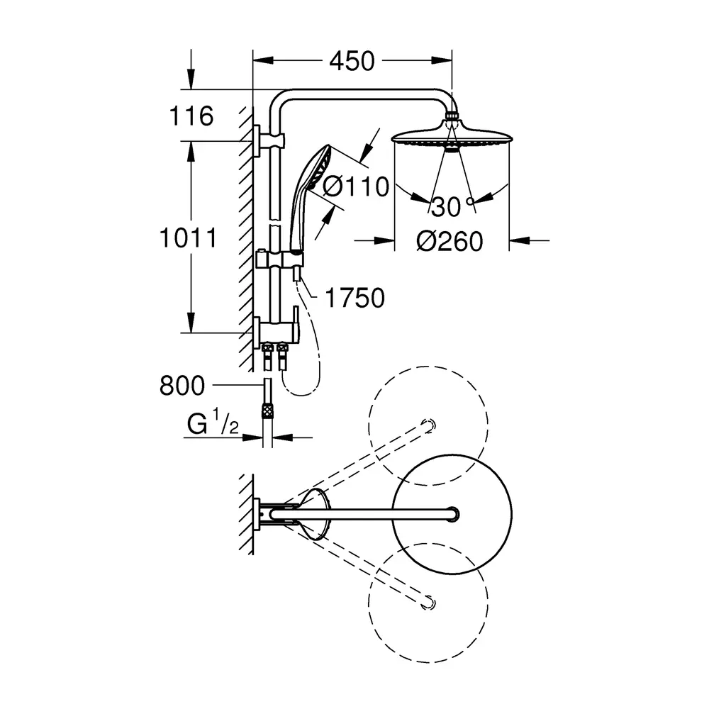 GROHE DreamSpray - оптимальне розподілення води по кожній душовій форсунці. GROHE StarLight – хромоване покриття. GROHE EcoJoy – водозберігаюча технологія. GROHE SprayDimmer – плавне зниження витрати води. GROHE SpeedClean - запобігання про