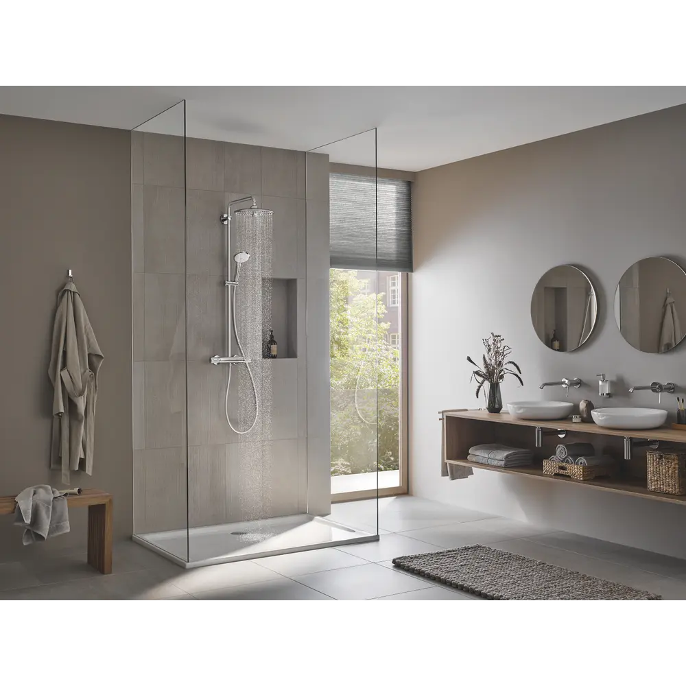 Термостатичний змішувач. Кронштейн душ 450 мм. Верхній душ Euphoria 260 (26457) 3 режими струменя Rain, SmartRain, Jet з кутом повороту шарового шарніра ±15°. Ручний душ Euphoria 110 Massage (27239000) 3 режими струменя: Rain, Massage, SmartRain регу