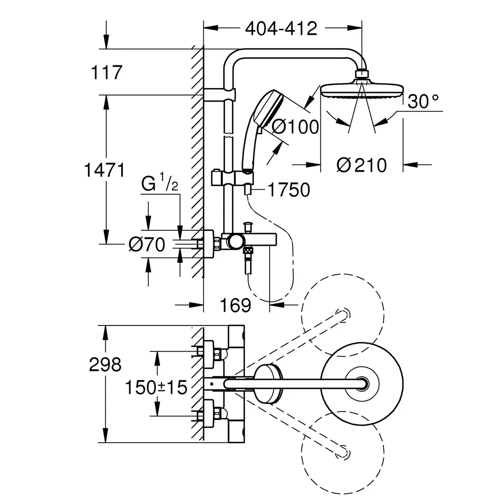 GROHE DreamSpray - оптимальне розподілення води по кожній душовій форсунці. GROHE StarLight – хромоване покриття. GROHE TurboStat - забезпечення та підтримання температури води. GROHE SafeStop – обмеження температури води до 38 °C. GROHE SpeedC