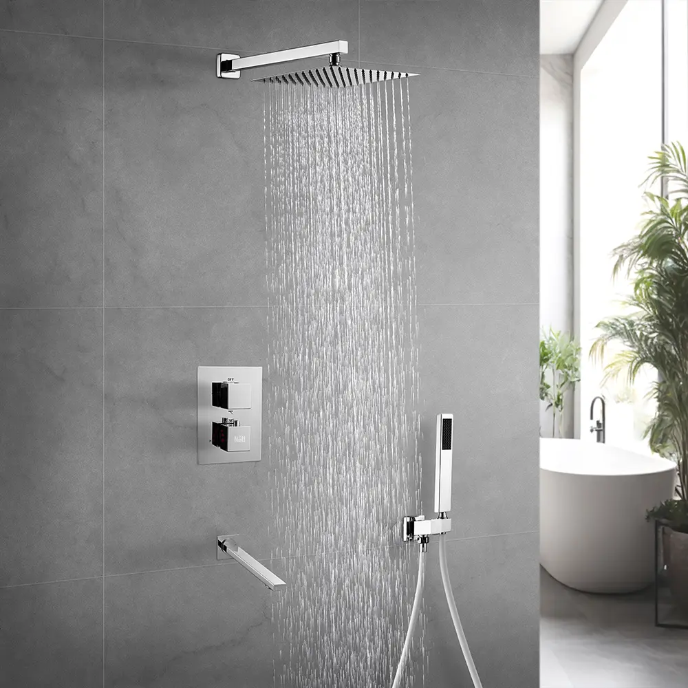 Система дуже тиха, плавний перехід між верхнім і ручним душем. Окремо приємно, що комплект повністю прихований — у ванній стало більше простору, й виглядає стильно. Після встановлення — одне задоволення користуватись. Якщо ви цінуєте комфорт і мінімалізм — цей варіант саме те, що треба.