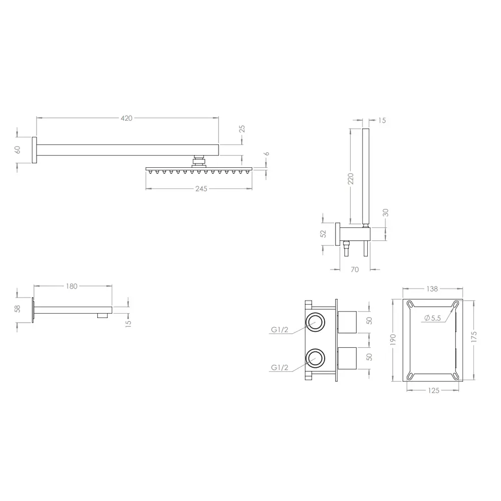 Після ремонту шукали щось стильне й надійне для душової зони — зупинилися на цій системі. Дуже задоволені якістю: термостат працює чітко, вода не «стрибає» по температурі. Встановлення в стіну виглядає естетично та мінімалістично. Вилив зручний. Рекомендую.