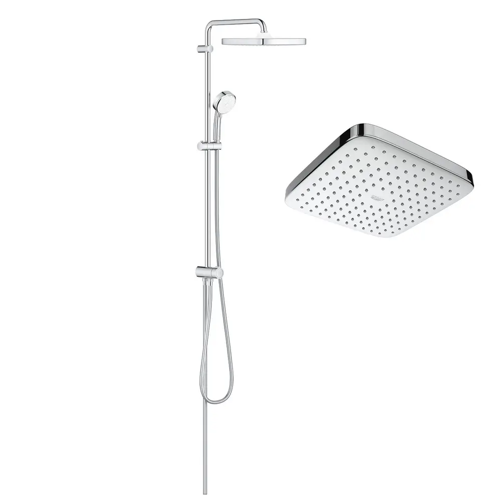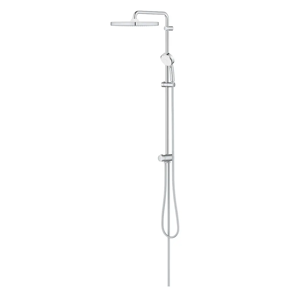 Душова стойка Grohe Tempesta Cosmopolitan 26694000 має оптимальний розподіл води й забезпечує максимальну зручність гігієнічних процедур. Вона складається з верхнього та ручного душів. Якісне хромоване покриття гарантує довговічність і зносостійкість. Дана стійка може бути змонтована і підімкнена до вже наявного змішувача.