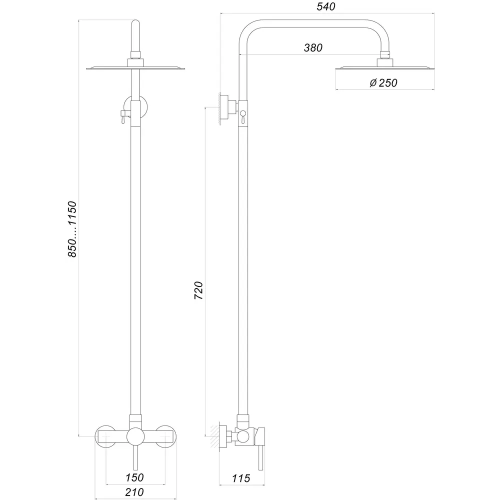 - верхній душ - кругла лійка ø25 см, стійка (85-125 см)