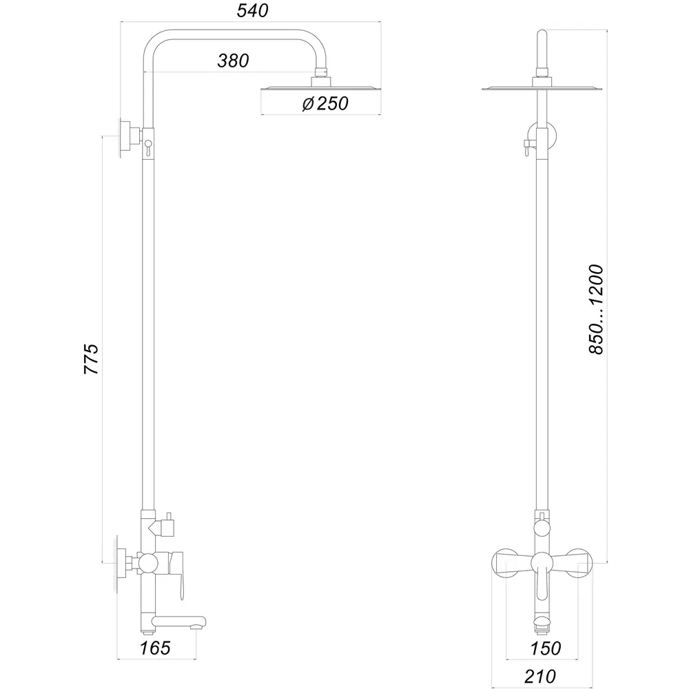 - верхній душ - кругла лійка ø 25 см, стійка (85-125 см)