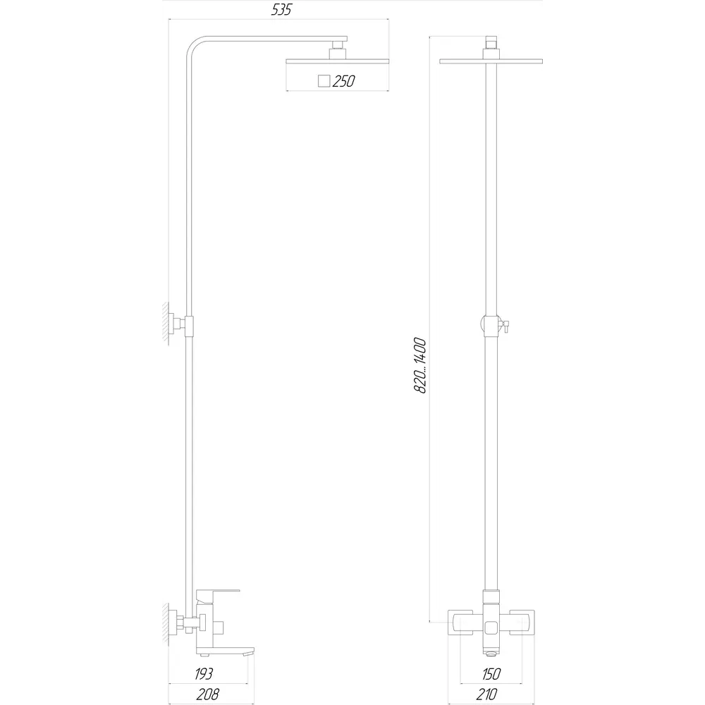 - верхній душ - квадратна лійка 25 см, стійка (85-140 см)