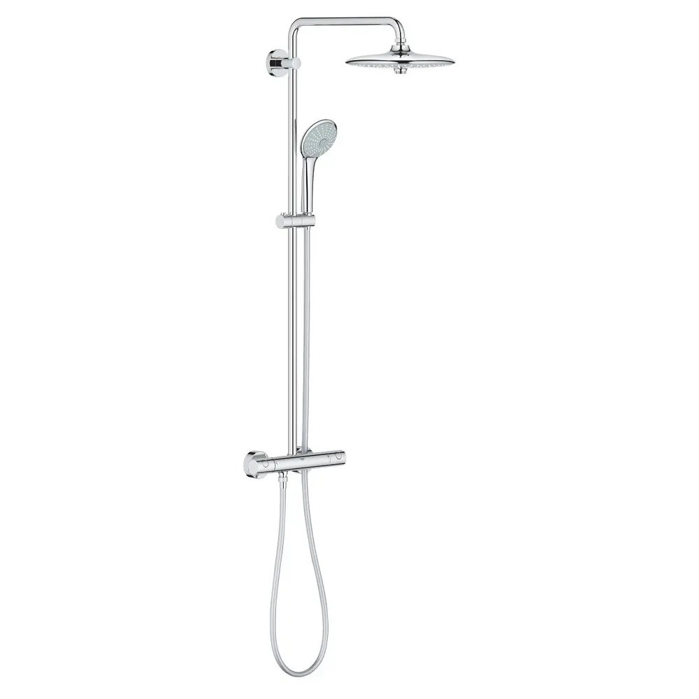 Душова система Grohe Euphoria 27296002 має оптимальний розподіл води й забезпечує максимальну зручність гігієнічних процедур. Вона складається з душової стійки з верхнім і ручним душем, а також зручного змішувача. Якісне хромоване покриття гарантує довговічність і зносостійкість. Термостатичний змішувач забезпечить автоматичний контроль змішування води.
