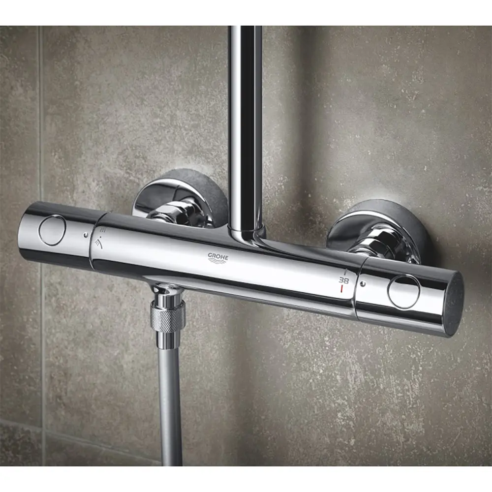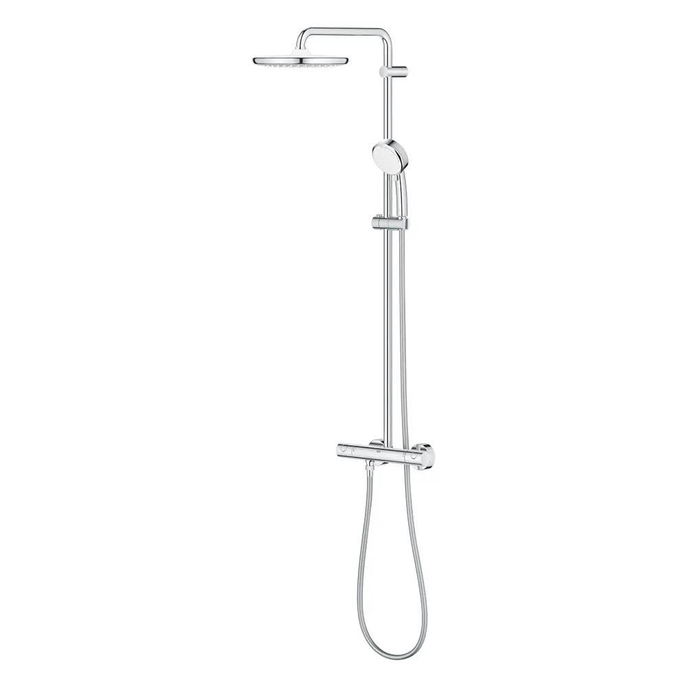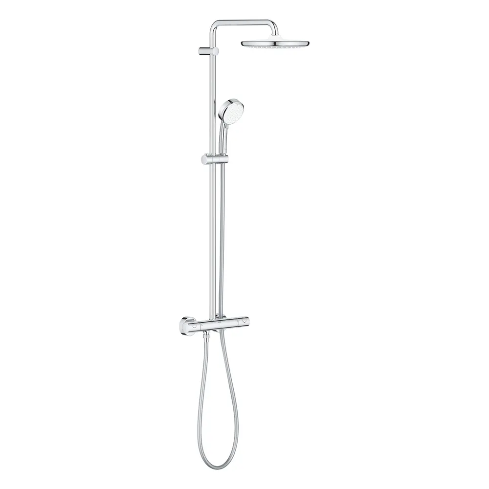 Душова система Grohe Tempesta Cosmopolitan 26670000 має оптимальний розподіл води й забезпечує максимальну зручність гігієнічних процедур. Вона складається з душової стійки з верхнім і ручним душем, а також зручного змішувача. Якісне хромоване покриття гарантує довговічність і зносостійкість. Термостатичний змішувач забезпечить автоматичний контроль змішування води.