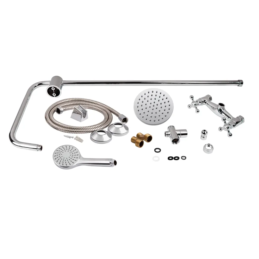 Змішувач, Кронштейн для верхнього душу, Лійка для верхнього душу, Кронштейн для ручного душу, Лійка для ручного душу, Душовий шланг, Душова стійка, Кріпильні деталі