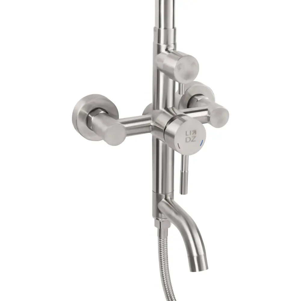 Душова система Lidz (NKS) 12 32 1003 - незамінний атрибут для приємної і звичної кожній сучасній людині гігієнічної процедури. До складу входять змішувач, верхній та ручний душ, а також зручна, регульована за висотою душова стійка. Деталі виконані з високоякісної нержавіючої сталі, що збільшує експлуатаційний термін служби даної душова системи.