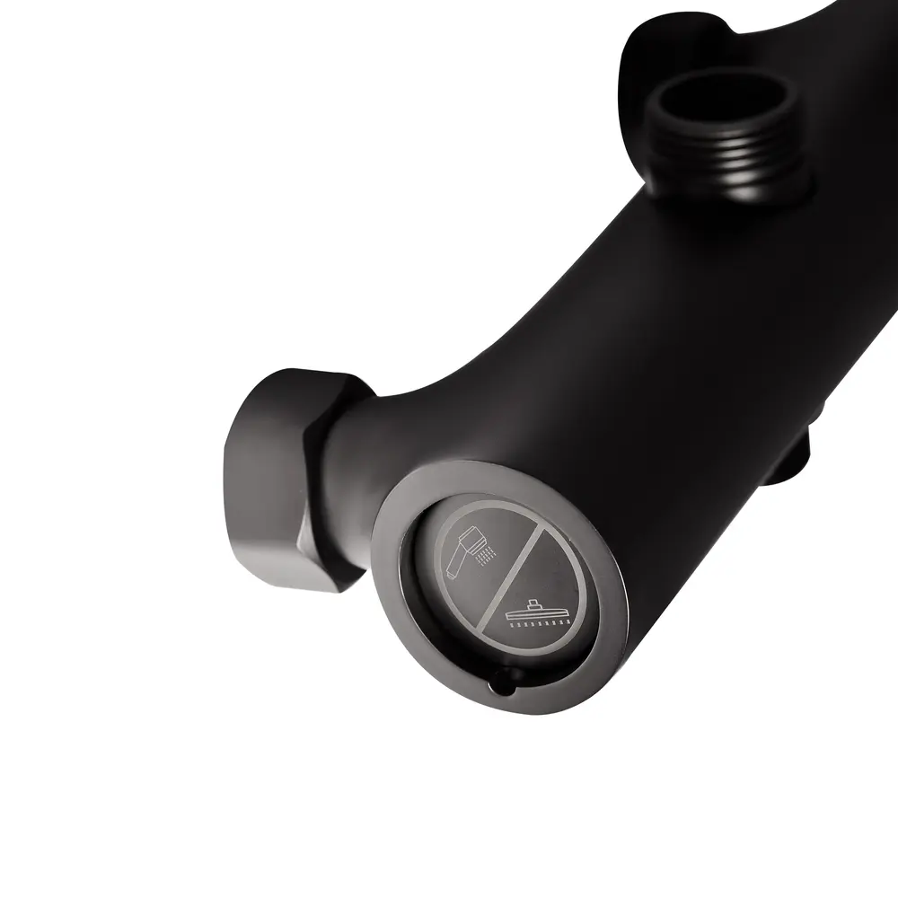 Душова система Qtap Sloup 57106KOB - сучасне і практичне рішення в одному виробі. Вона виготовлена з якісної латуні і міцного пластику, які не схильні до корозії. Система виконана в чорному кольорі з матовою поверхнею, укомплектована стильним змішувачем з кнопкою перемикання між душовими режимами, душовою стійкою, а також двома лійками для ручного і верхнього душу. Регулювання натиску і температури води здійснюється за допомогою зручного важеля збоку.
