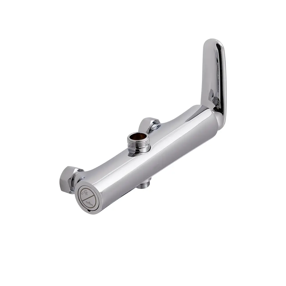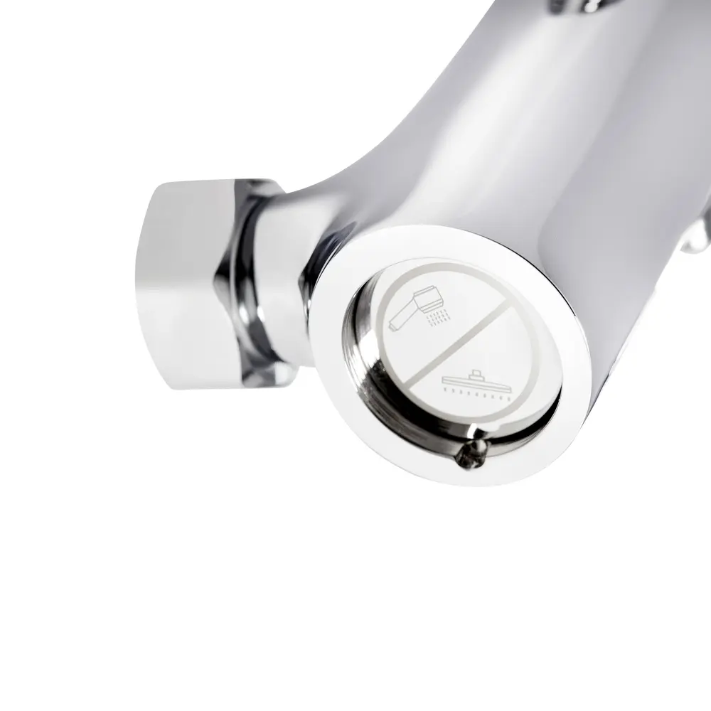 Душова система Qtap Sloup 57106KOC - сучасне і практичне рішення в одному виробі. Вона виготовлена з якісної латуні і міцного пластику, які не схильні до корозії. Система виконана з глянцевою хромованою поверхнею, укомплектована стильним змішувачем з кнопкою перемикання між душовими режимами, душовою стійкою, а також двома лійками для ручного і верхнього душу. Регулювання натиску і температури води здійснюється за допомогою зручного важеля збоку.