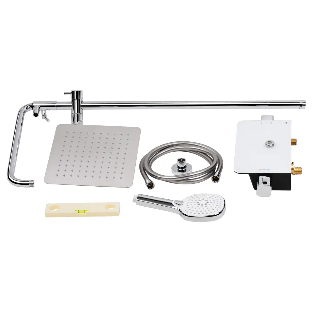 Змішувач, Кронштейн для верхнього душу, Лійка для верхнього душу, Кронштейн для ручного душу, Лійка для ручного душу, Душовий шланг, Душова стійка, Рівень, Кріпильні деталі
