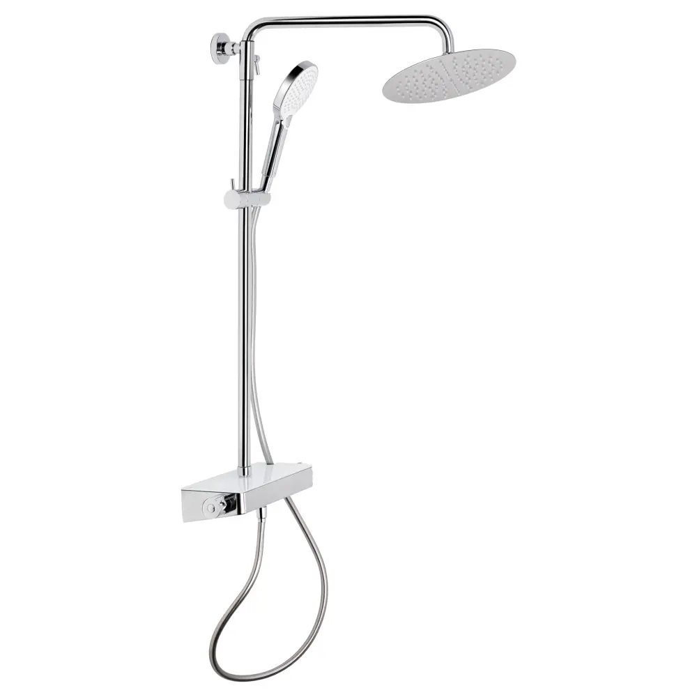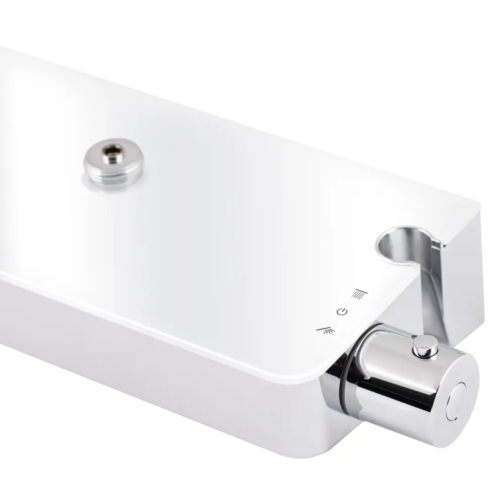 Душова система Qtap Sloup 57T105VOGC складається з душової стійки з верхнім і ручним душем, а також термостатичного змішувача. Лійка для ручного душу має 3 режими подачі води, а змішувач виконано у вигляді зручної дзеркальної полиці, на якій можна зберігати різні засоби. Виріб виготовлено з стійкою латуні і міцного пластику, що дозволить продовжити термін експлуатації. Завдяки кріпленням, якими комплектується виріб встановлення не займе багато часу.
