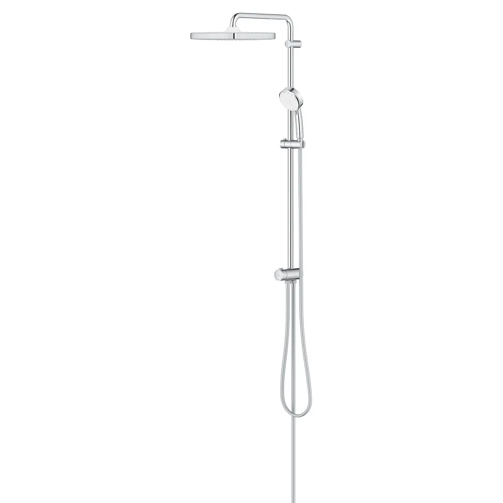 Без змішувача. Без виливу. Душова стійка - 1036 мм. Горизонтальний душовий кронштейн: довжина - 390 мм. Верхній душ GROHE Tempesta Cosmopolitan 250 Cube. Ручний душ GROHE Tempesta Cosmopolitan 100 мм. Регульований тримач ручного душу. Душовий шланг GROHE Relexaflex: 1500 мм. Душовий шланг GROHE Relexaflex: 500 мм.