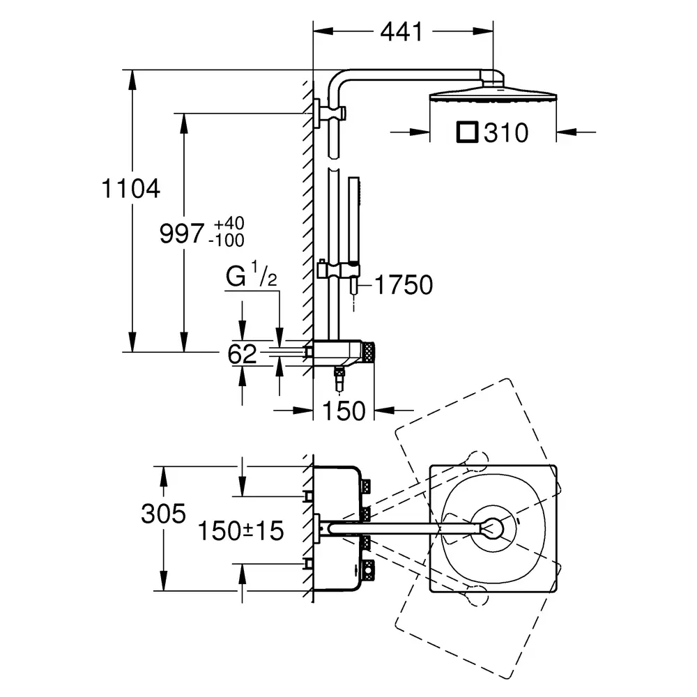 GROHE DreamSpray - оптимальне розподілення води по кожній душовій форсунці. GROHE StarLight – хромоване покриття. GROHE CoolTouch - запобігання опікам поверхні виробів. GROHE TurboStat - забезпечення та підтримання температури води. GROHE