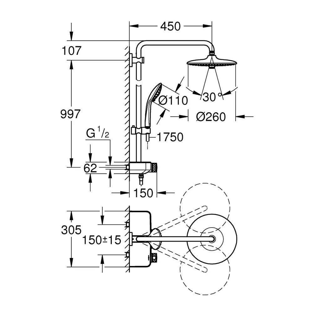 GROHE DreamSpray - оптимальне розподілення води по кожній душовій форсунці. GROHE StarLight – хромоване покриття. GROHE CoolTouch - запобігання опікам поверхні виробів. GROHE TurboStat - забезпечення та підтримання температури води. GROHE