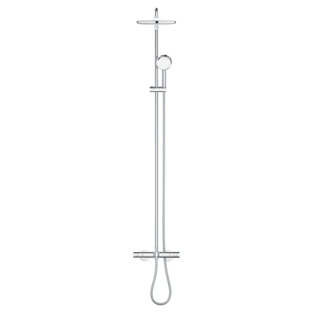 Душовий кронштейн, стійка, верхній душ, душовий шланг, ручний душ 2 режими струменя, тримач ручного душу, термостатичний змішувач