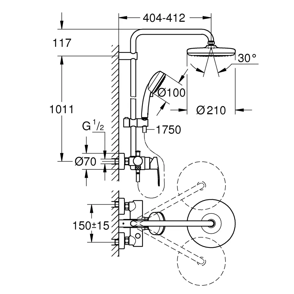 GROHE DreamSpray - оптимальне розподілення води по кожній душовій форсунці. GROHE StarLight – хромоване покриття. GROHE SpeedClean - запобігання утворенню вапняних відкладень. GROHE SilkMove – плавність ходу важеля. GROHE Twistfree - пре