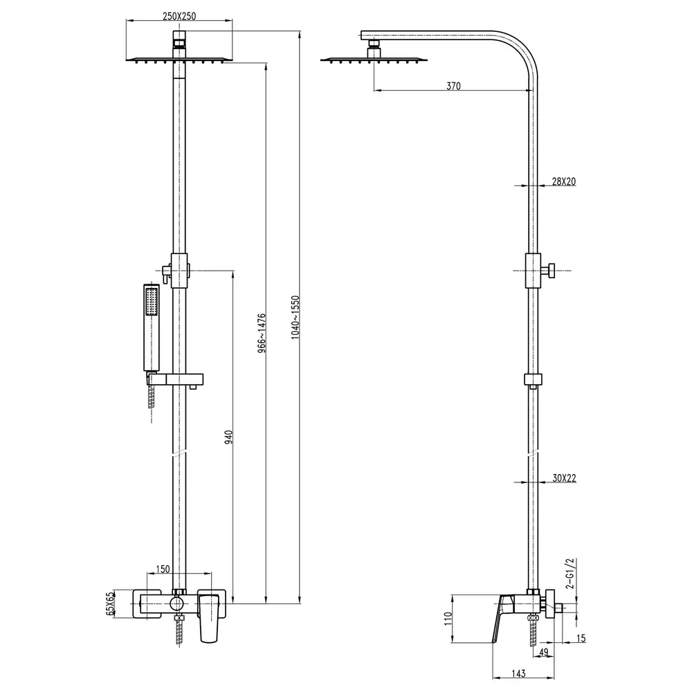 Вид монтажу душової системи: Настінний, на 2 виходу води
