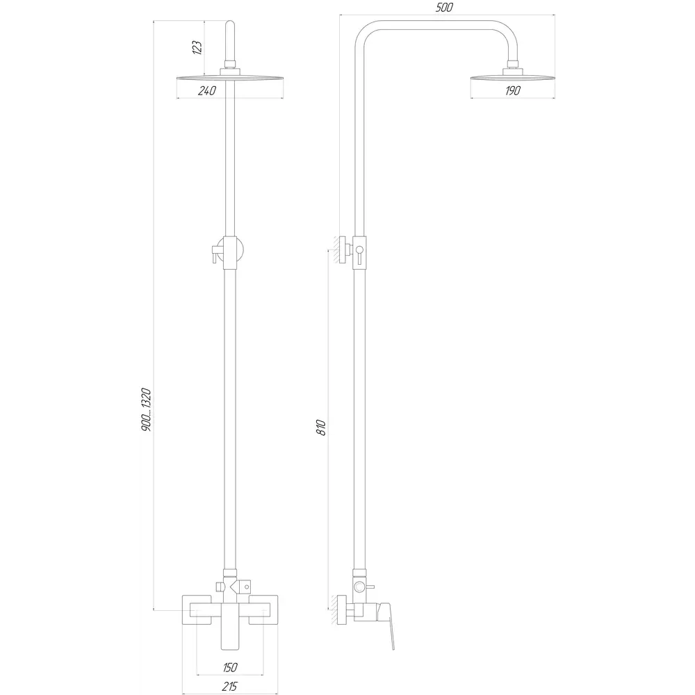 Вид монтажу душової системи: Настінний, на 2 виходу води