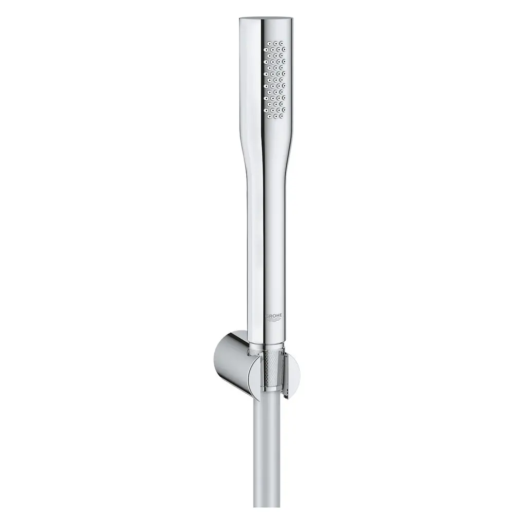 Душовий гарнітур Grohe Euphoria Cosmopolitan Stick 27369000 - функціональний, зручний та надійний душовий атрибут. Він складається з кронштейна, стильної тонкої лійки для ручного душу і шланга. Зручна лійка, шланг з системою запобігання скручуванню і якісне хромоване покриття є незаперечними перевагами даного виробу.