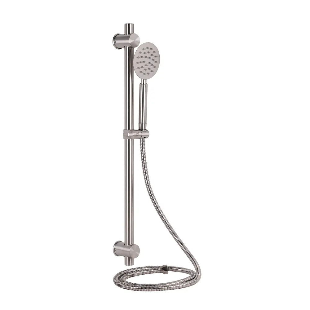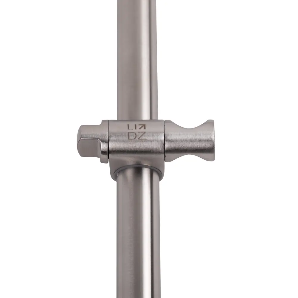 Душовий гарнітур Lidz (NKS) 49 30 321 стане гарним доповненням будь-якої сучасної ванної кімнати. Він складається з душової стійки з регульованим тримачем і лійки зі шлангом. Гарнітур виготовлений з якісної нержавіючої сталі, завдяки чому експлуатаційний період виробу може бути досить тривалим. Даний гарнітур може бути підключений до раніше встановленого змішувача.