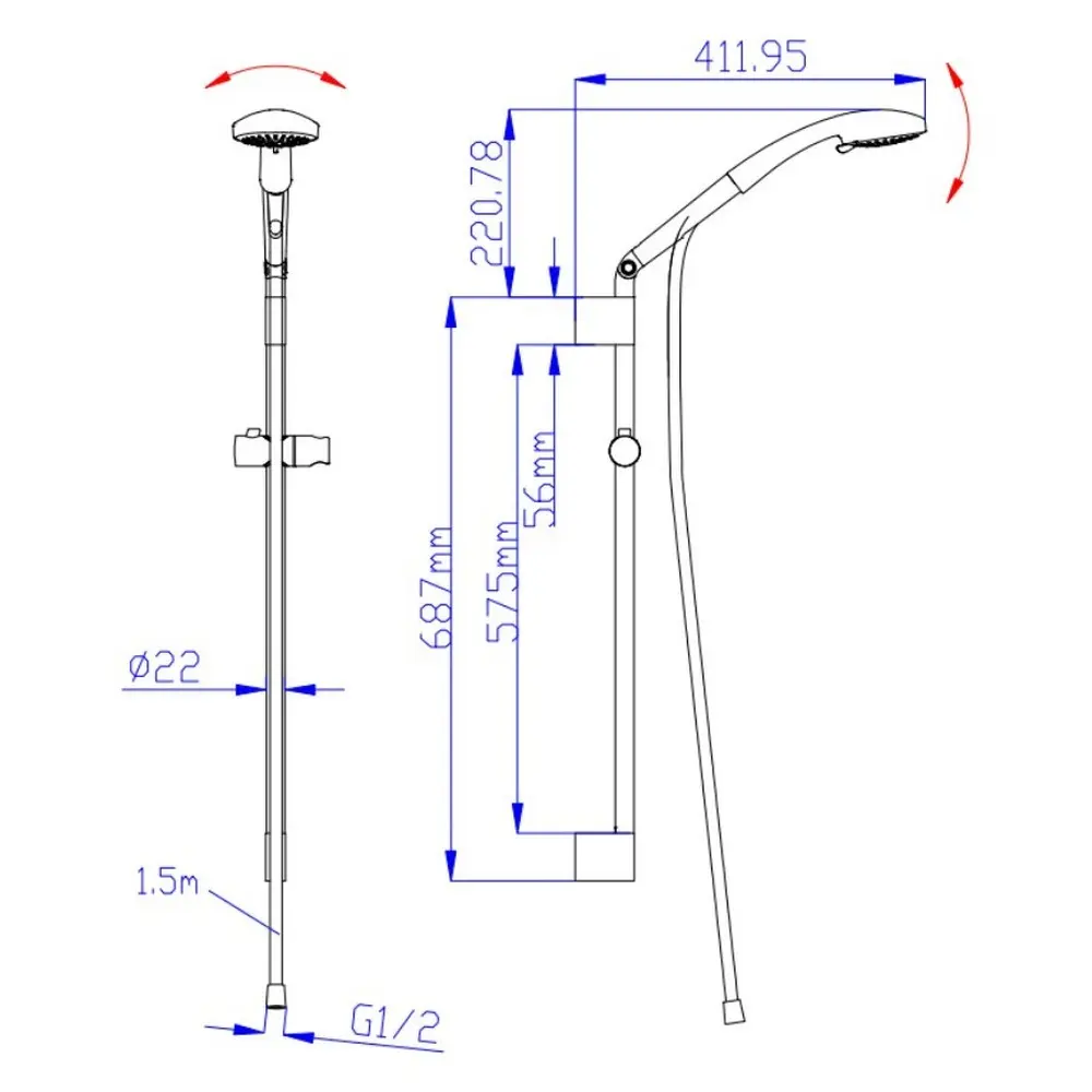 Душова стійка з вбудованим кронштейном, Кронштейн для ручного душу, Лійка для ручного душу, Душовий шланг, Кріпильні деталі
