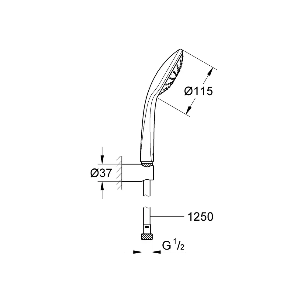 Кронштейн для лійки (27056000), лійка для ручного душу (27265000), душовий шланг (28362000), кріплення.