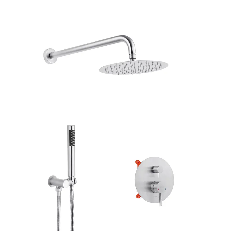 Комплекты душевых гарнитуров могут быть как встроенными, так и накладными – выбирайте в зависимости от стиля вашей ванной комнаты и способа монтажа.