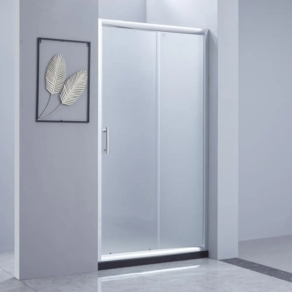 Глухе скло, скляні двері, розширювальні профілі, верхній профіль, нижній профіль, бічні профілі, ручка, подвійні ролики, комплект кріпильних деталей, набір ущільнювачів, заглушки.