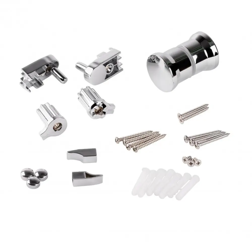 Бічний профіль, розширювальний профіль, скляні двері, ручки, заглушки, комплект кріпильних деталей, набір ущільнювачів.