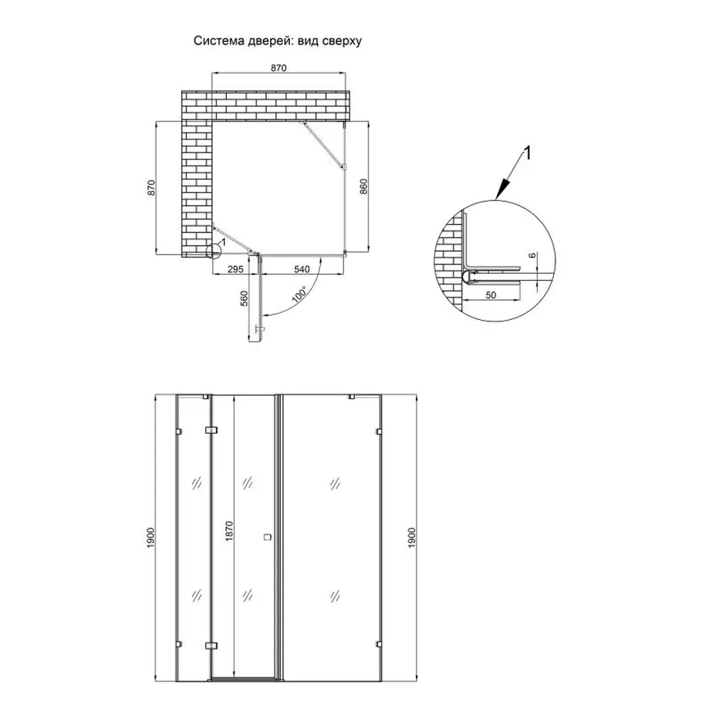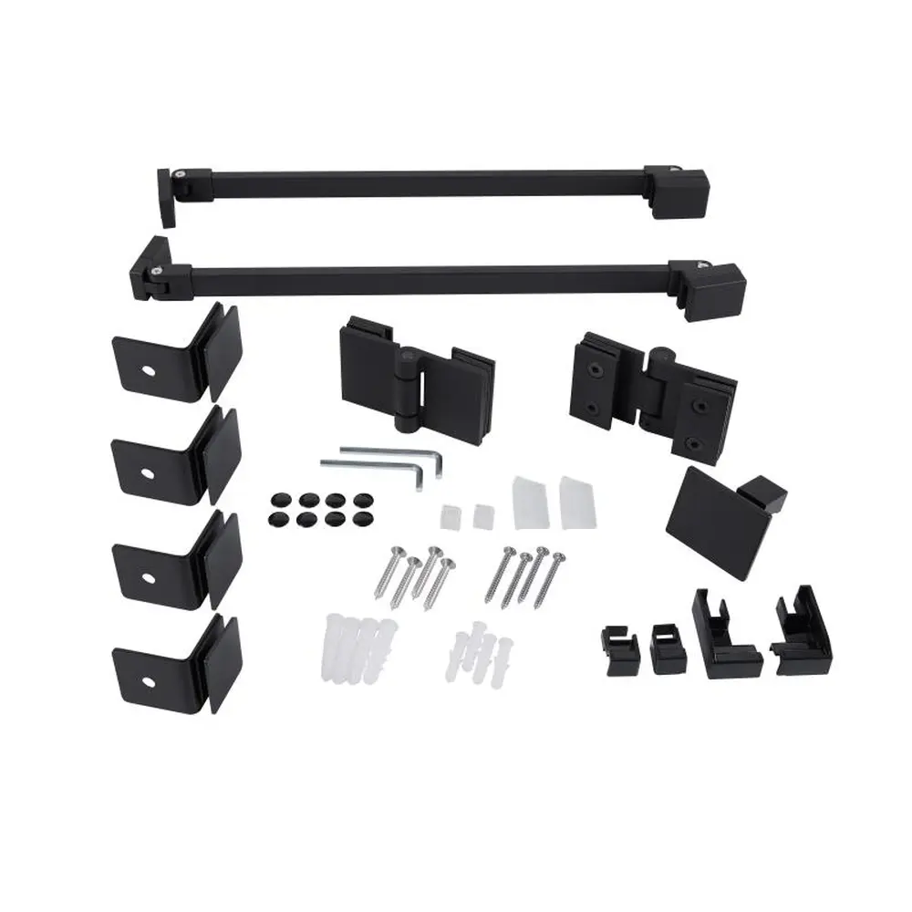 Петлі, кронштейни, утримувачі скла, глухе скло, бічна панель, скляні двері, ручка, нижній борт, комплект кріпильних деталей, набір ущільнювачів, бічні профілі.