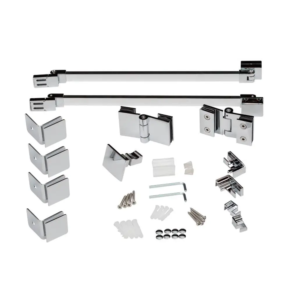 Петлі, кронштейни, утримувачі скла, глухе скло, бічна панель, скляні двері, ручка, нижній борт, комплект кріпильних деталей, набір ущільнювачів, бічні профілі.