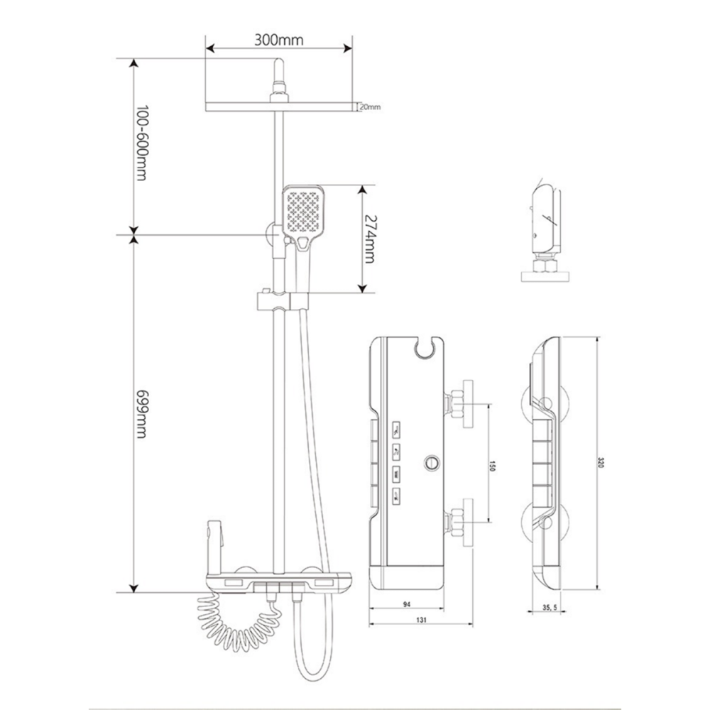 Регульована висота: Висота душової стійки регулюється в діапазоні 700-1150 мм, що дозволяє налаштувати її під будь-який зріст користувача, забезпечуючи максимальний комфорт.