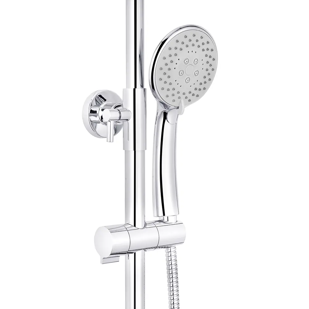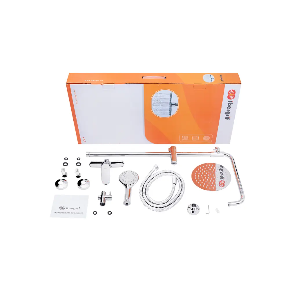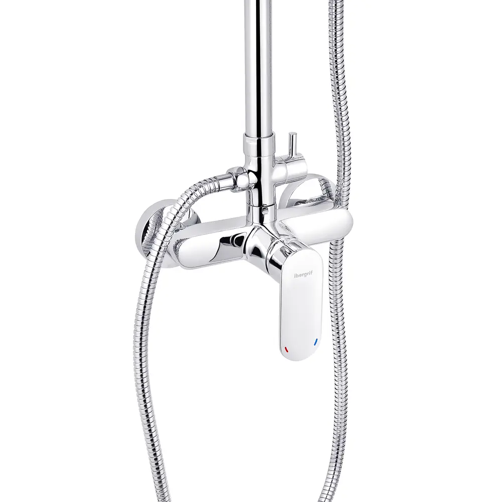 Душова система Ibergrif River M17021 завдяки стильному дизайну чудово впишеться в сучасну ванну кімнату. Душова система виготовлена з латуні із зносостійким хромовим покриттям. Воно не дряпається та захищає сантехніку від впливу вологи. Ручна лійка з 5 режимами перемикання доповнена шлангом. Розмір лійки 10,5 см. Діаметр тропічного душу 20 см. Управління потоком здійснюється за допомогою двопозиційного важеля. Робочий механізм – довговічний керамічний картридж 35 мм.