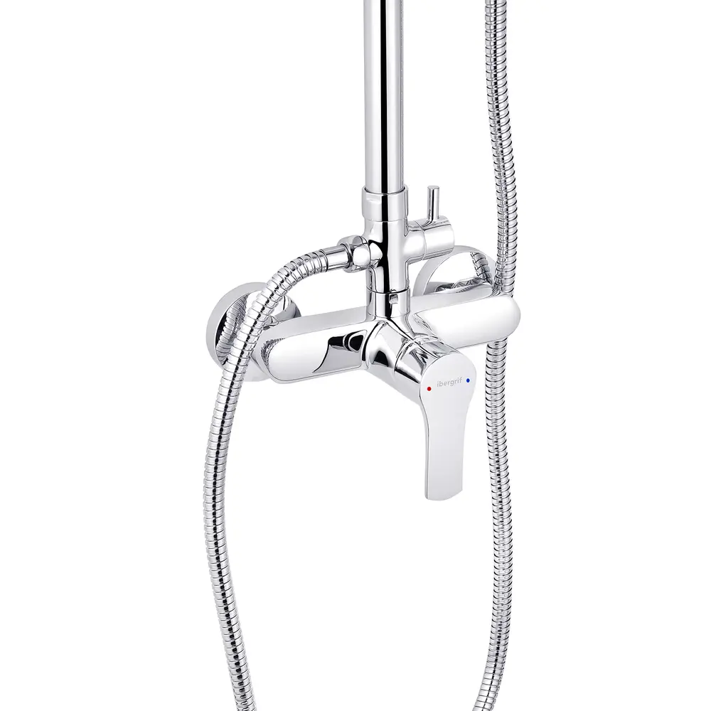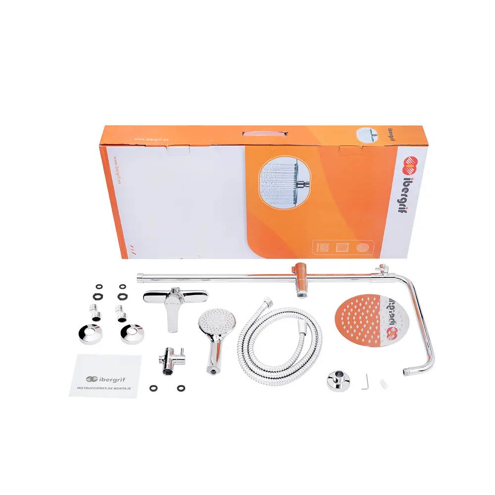 Душова система Ibergrif Star M17057 завдяки стильному дизайну чудово впишеться у сучасну ванну кімнату. Душова система виготовлена з латуні із зносостійким хромовим покриттям. Воно не дряпається та захищає сантехніку від впливу вологи. Ручна лійка з 5 режимами перемикання доповнена шлангом. Розмір лійки 10,5 см. Діаметр тропічного душу 25 см. Управління потоком здійснюється за допомогою двопозиційного важеля. Робочий механізм – довговічний керамічний картридж 35 мм.