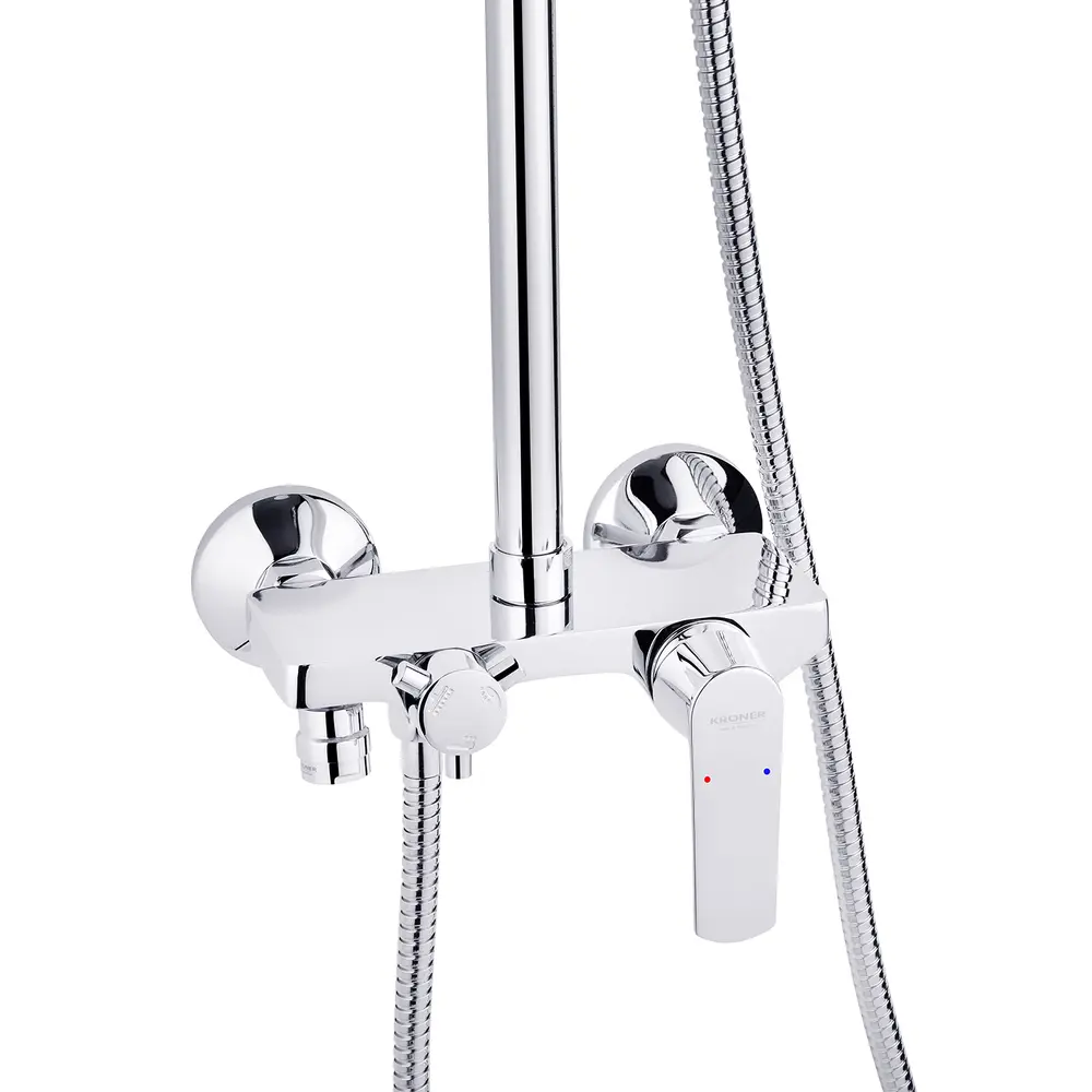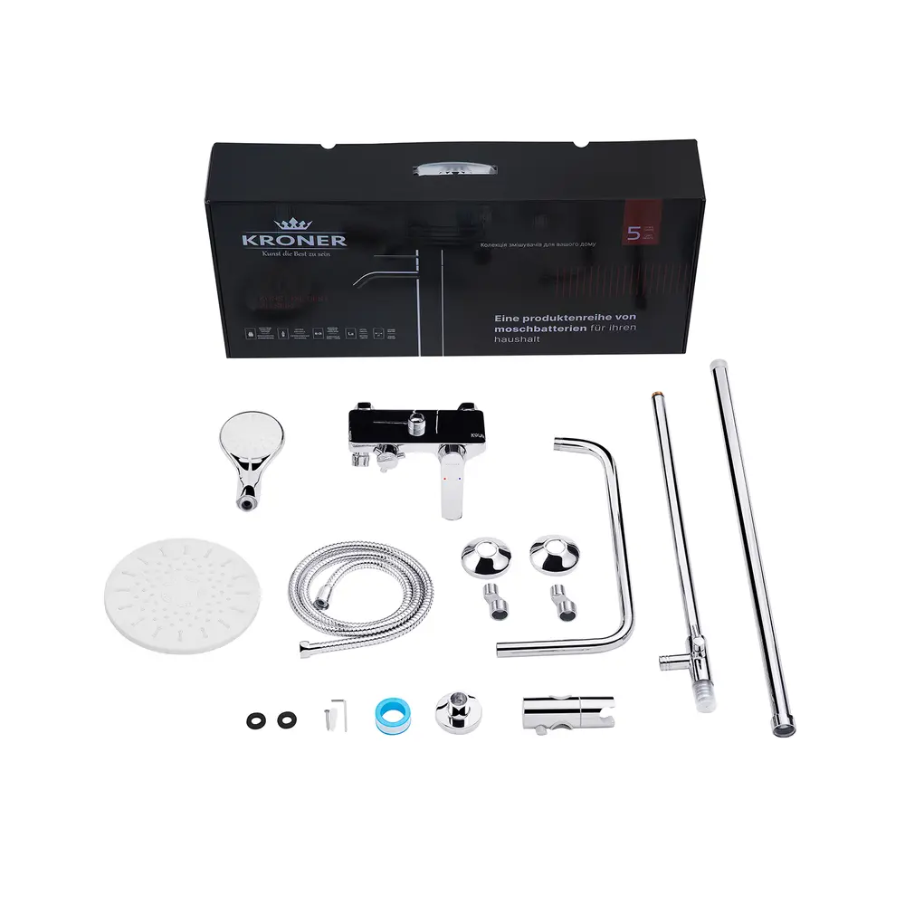 Душові системи від KRONER – це німецька якість, технологія та надійність. Сучасний дизайн стане вдалим доповненням інтер’єру ванної кімнати. Виготовленні з якісних матеріалів, що не піддаються корозії, легкість у збірці не завдасть клопоту при монтажу та використанні. Данна модель виготовлена з латуні / ABS пластика.