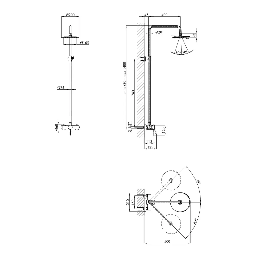 Змішувач, кронштейн для верхнього душу, вирва для верхнього душу, душова стійка, кріплення.