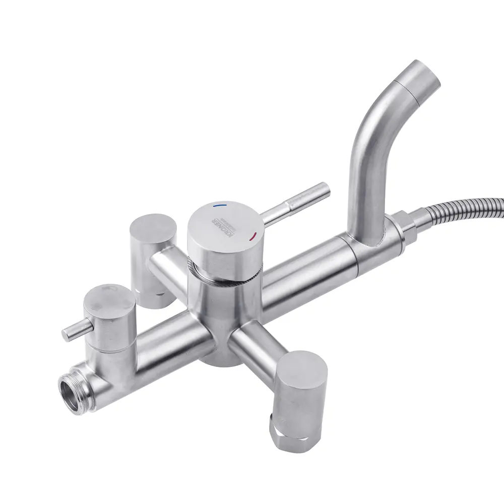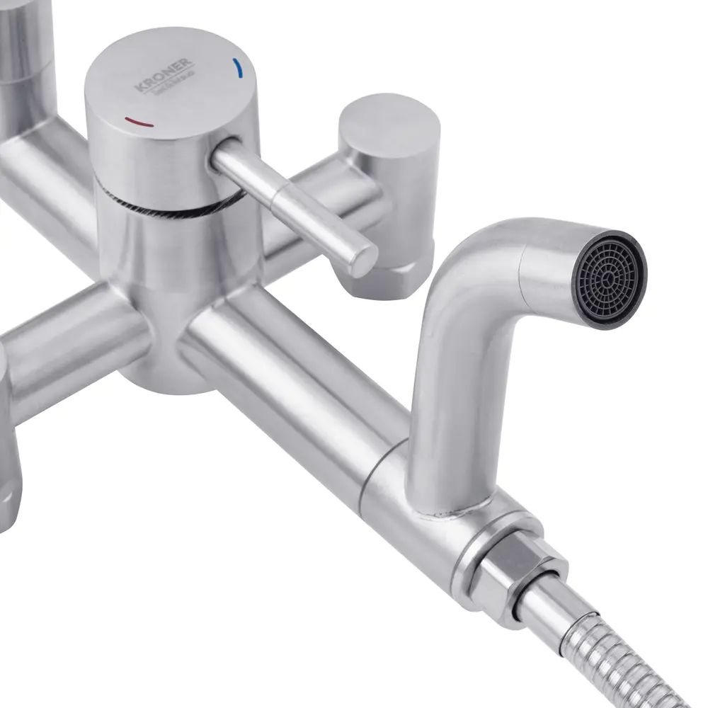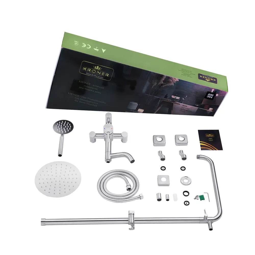 Душові системи від KRONER – це німецька якість, технологія та надійність. Сучасний дизайн стане вдалим доповненням інтер’єру ванної кімнати. Виготовленні з якісних матеріалів, що не піддаються корозії, легкість у збірці не завдасть клопоту при монтажу та використанні. Данна модель виготовлена з нержавіючої сталі AISI 304, має систему проти скручування душового шлангу.