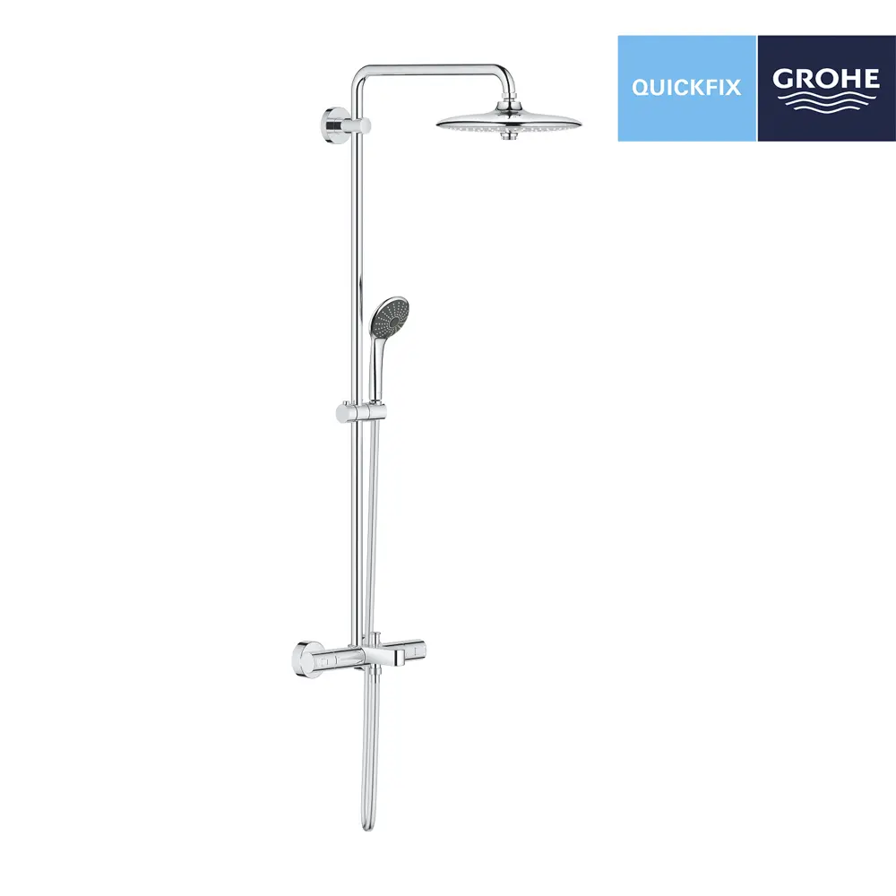 Душевая система с термостатом Grohe QuickFix Vitalio Joy System 260 (27860001), состоит из душевой стойки с верхним и ручным душем, а также термостатического смесителя. Лейка для ручного душа и верхнего душа имеет 3 режима подачи воды. Изделие изготовлено из стойкой латуни и прочного пластика, что позволит продлить срок эксплуатации. Благодаря крепежным деталям, которыми комплектуется изделие, установка не доставит лишних хлопот.
