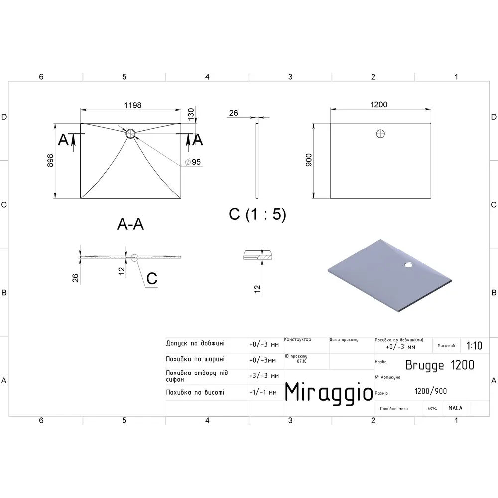 Душовий піддон BRUGGE 1200 зі штучного каменю - надійний вибір для Вашої душової кабіни. Прямокутна форма піддона забезпечує щільне прилягання до стін ванної кімнати.