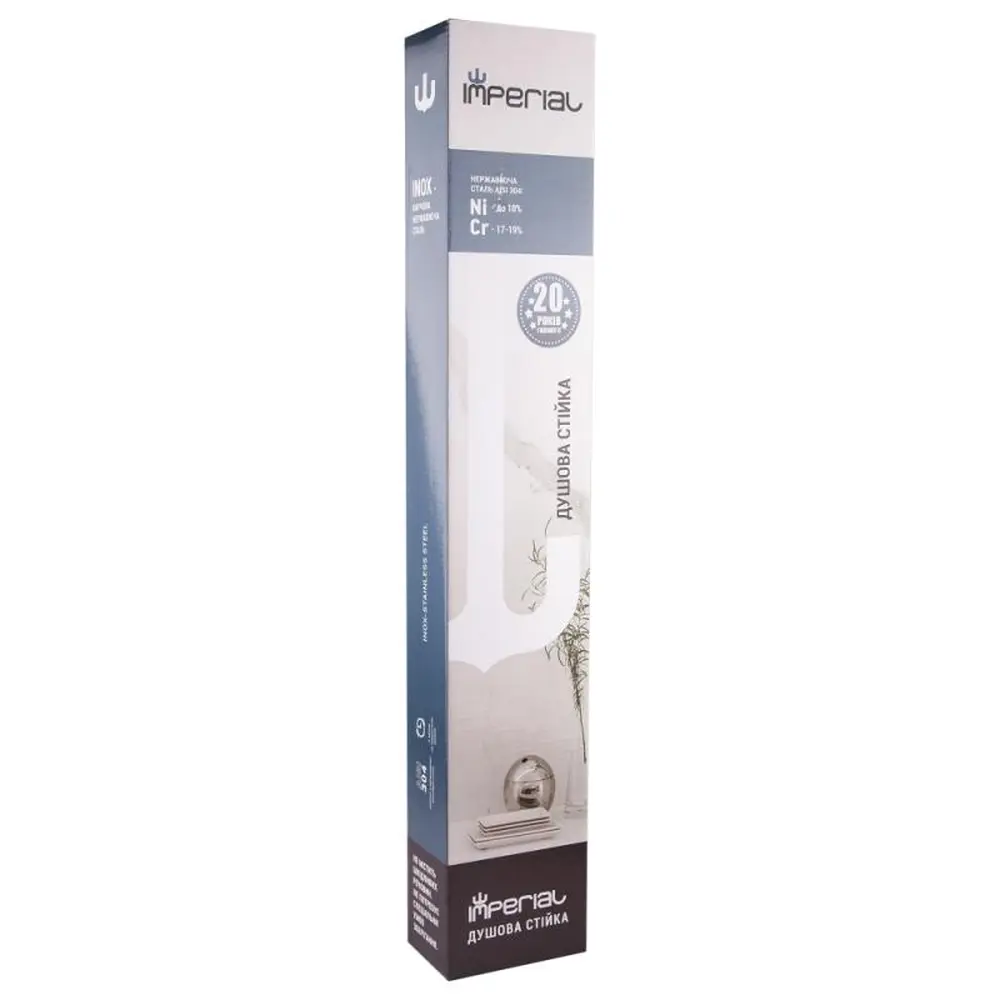 Душовий гарнітур Imperial 323 стане хорошим доповненням будь-якої сучасної ванної кімнати. Він складається з душової стійки з регульованим тримачем і лійки зі шлангом. Гарнітур виготовлений з якісної нержавіючої сталі, завдяки чому експлуатаційний період виробу може бути досить тривалим. Даний гарнітур може бути підключений до раніше встановленого змішувача.