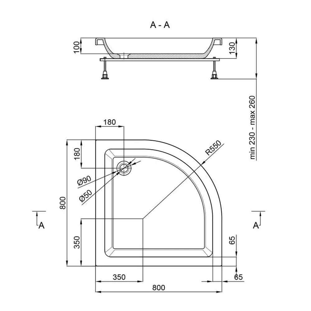 Ніжки піддона регулюються за висотою.
