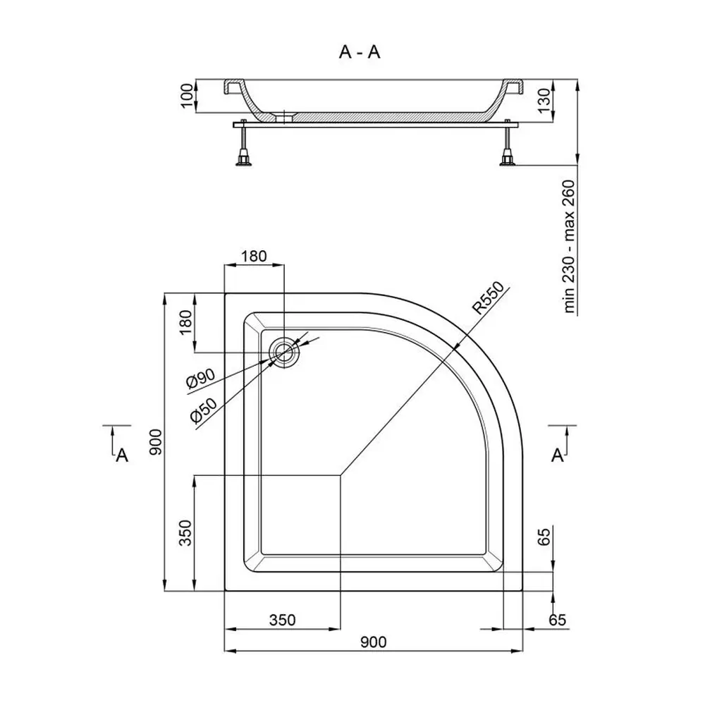 Ніжки піддона регулюються за висотою.