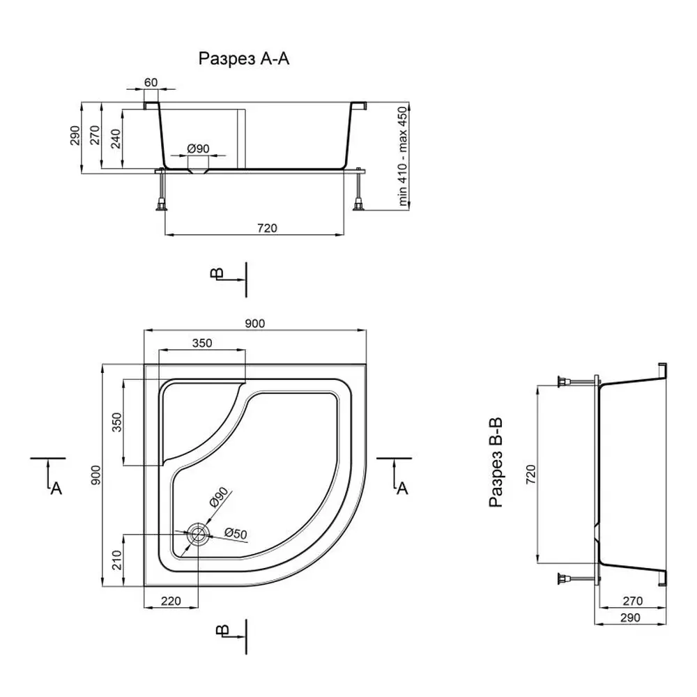 Душовий піддон Lidz Kupala ST90x90x41 має напівкруглу обтічну форму, завдяки якій простір у ванній використовується максимально ефективно. Виріб виготовлено з білого акрилу, який має гарну термоізоляцію і стійкий до механічних пошкоджень. Піддон має отвір під сифон. Ніжки піддону регулюються за висотою. Панель до піддону купується окремо.