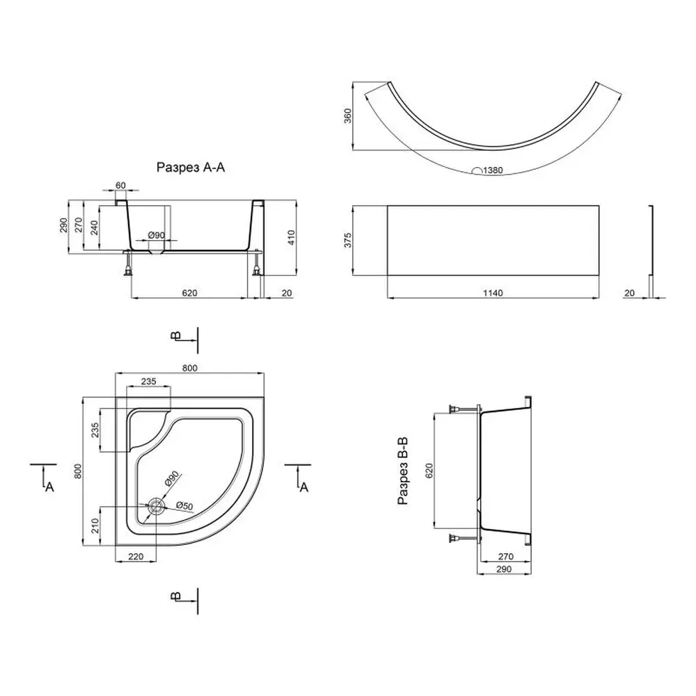 Душовий піддон Lidz Kupala з панеллю LKUST808041SET має напівкруглу обтічну форму, завдяки якій простір у ванній використовується максимально ефективно. Піддон виготовлений з білого акрилу, панель виготовлена з білого ABS пластику. Виріб має гарну термоізоляцію і стійкий до механічних пошкоджень. Піддон має отвір під сифон. Ніжки піддону регулюються за висотою. Панель приховує простір між підлогою та душовим піддоном, який утворюється під час монтажу.